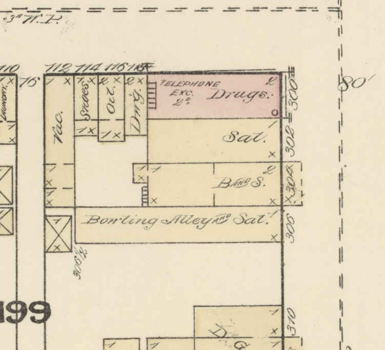 The first advertisement appears in July 1875 and proclaims to be the city's only bowling alley. In August 1876, Bennett & Enfield started a hardware business at this location but their partnership dissolved in January 1877. I correlated an article about the Laramie Furniture building fire in 1905 and an 1883 Sanborn Map to an exact address for Enfield's saloon and alley. I cannot find any bowling alley newspaper references during the late 1870s and early 1880s which is surprising and doesn't add up with the Sanborn map. I'm fairly positive this alley was a ten pinnet or box ball arcade configuration and the alley was still in the building when the 1883 map was created but likely not getting much attendance. |