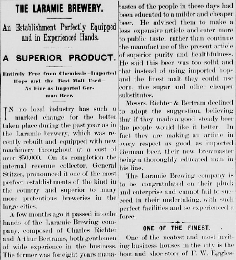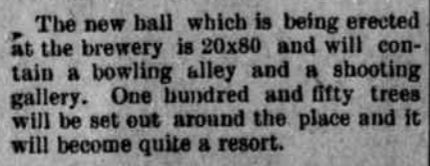 I only have one reference that a bowling alley and shooting gallery was planned for a new building addition at the Laramie Brewery in June 1892.