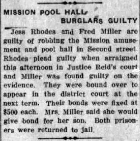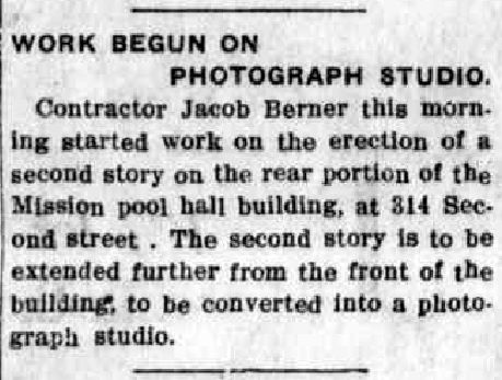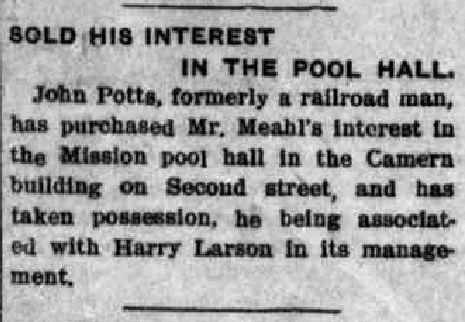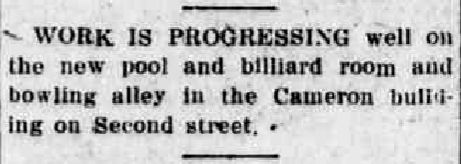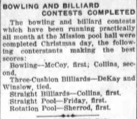 | Names: | Mission (Pool Hall) Bowling Alley #1 (Aug 1911 - June 1913) |