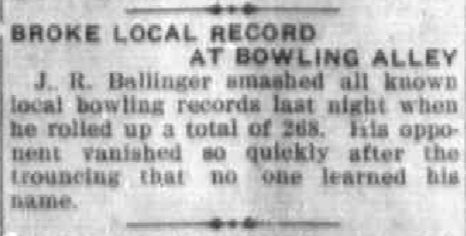 | Pinsetters: | Arcade (Aug 1911 - June 1913) |