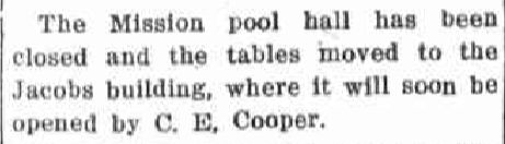 | Names: | Mission (Pool Hall) Bowling Alley #2 (June 1913 - Sept 1913) |